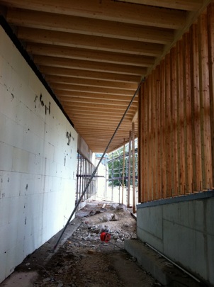 Haus der Berge, Installation of visible wood structures